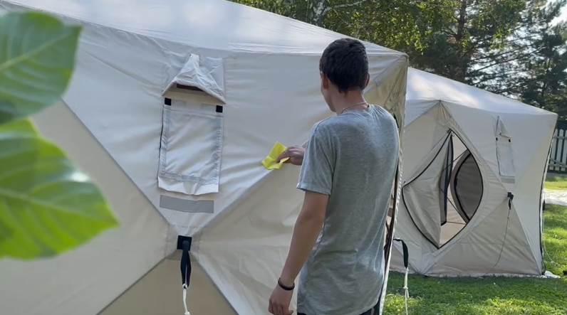2. Просушка — ОБЯЗАТЕЛЬНО! Разложите палатку и просушите ее в расправленном виде в хорошо проветриваемом помещении. Тщательно!